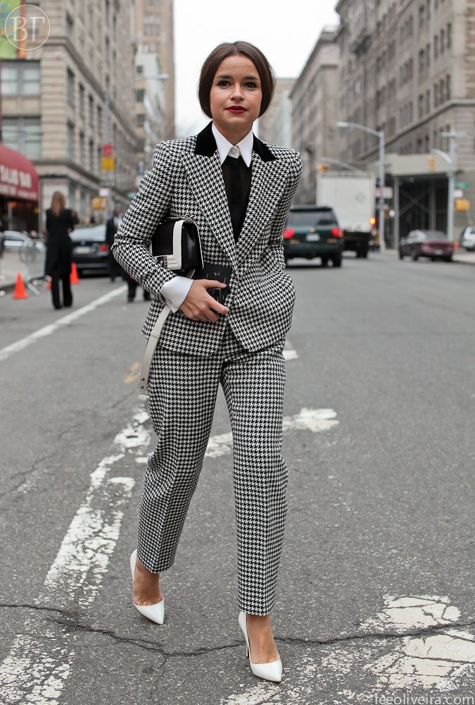 Classic black and white –think the houndstooth print is tricky enough on its own? Take the safest route and wear it in black and white and with black and white. This is a great, refreshing twist on the minimalist trend. It’s bold enough to make a statement yet still has that subtle vibe because of the muted colors that are black and white.