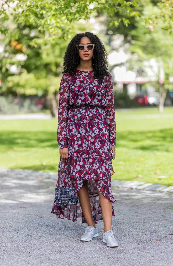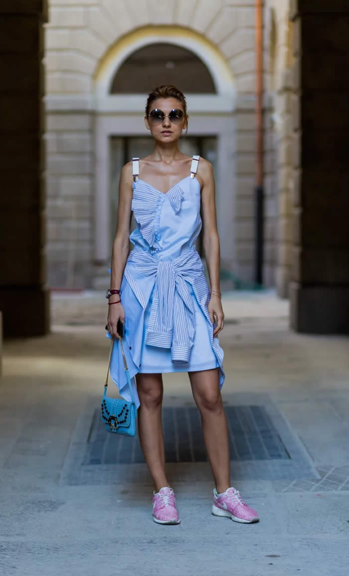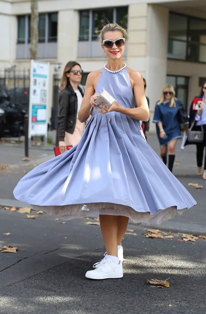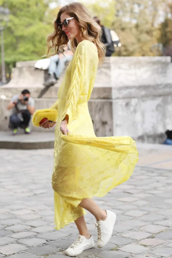 If you want to rock your favorite frilly dress in the daytime, casual sneakers make the look all the more practical.