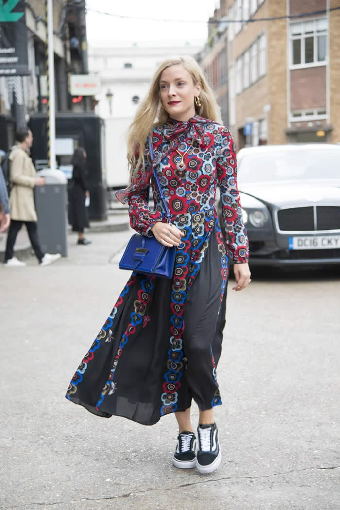 If you don’t want to keep your love for cool kicks quiet, try pairing a loud and colorful pair with an equally vibrant dress. The look is eclectic and interesting perfect for girls’ night out.