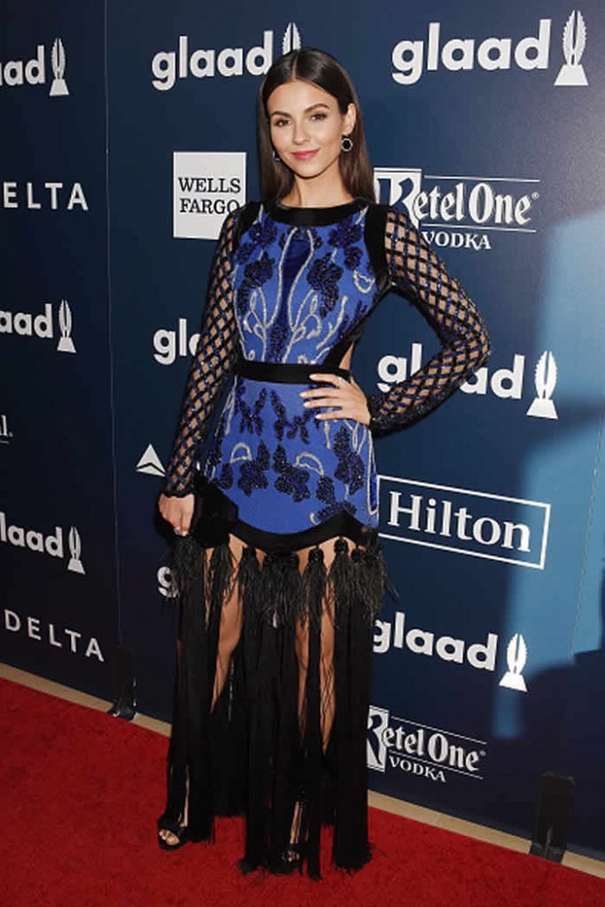 Victoria Justice & Patricia Arquette were photographed carrying Tyler Ellis at the 28th Annual GLAAD Media Awards last night in Los Angeles.
