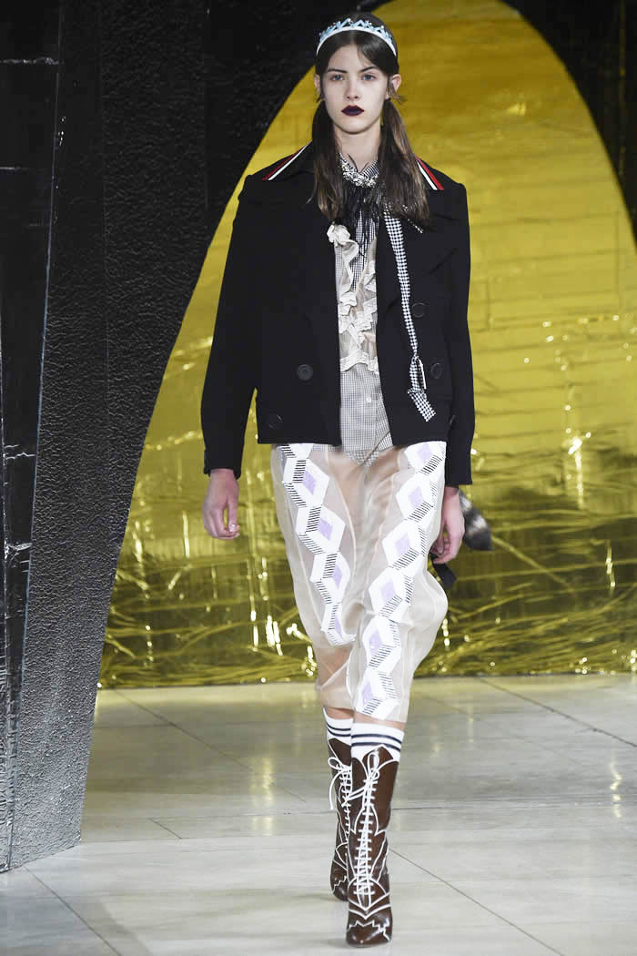 At the risk of stating the obvious, Miuccia Prada declared backstage after her Miu Miu Spring 2016 RTW Collection that “the world is becoming very irrational.” Without getting specific, she acknowledged that such a statement is more complicated than anything that can be expressed on a runway. But she still sideswiped at frustration with a great collection about underground culture, protest and escape. “We all want to go beyond what’s happening,” said Prada.
