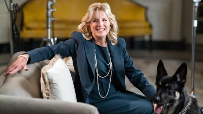 Current First Lady Dr. Jill Biden seems to be sending a subtle message to former First Lady Melania Trump by using the back of her jacket.