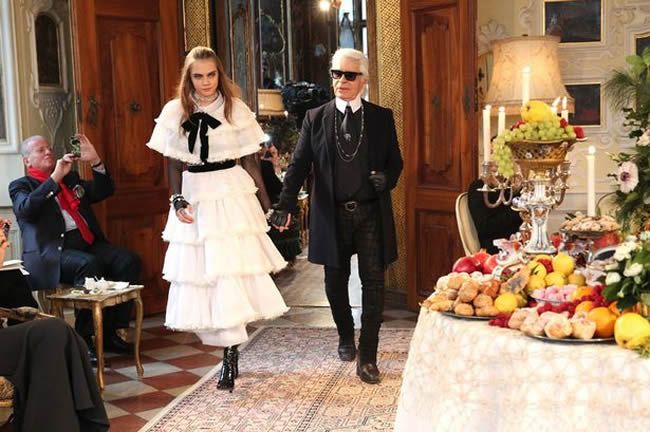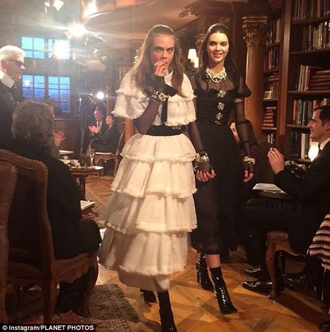 She wrote: "Beautiful girls @kendalljenner @caradelevingne walking in Chanel fashion show today in Austria…oh I see you @karllagerfeld !!!! #chanelsalzburg @chanelofficial"