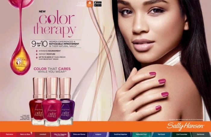 This marks Curtin’s first major launch since leaving Walgreens to join the company in May. “Consumers are seeking exciting news to give them a reason to buy that extra bottle of polish given they increased their purchase rate the last couple of years,” explained Curtin. “Color Therapy offers the unique benefits of instant moisture and nourishment while providing a noticeable improvement to natural nails…with a gorgeous shade palette so she doesn’t have to sacrifice wearing the color she loves.” Color Therapy ushers in the use of argan oil in the mass nail category. Heralded for its therapeutic properties, argan oil also resonates strongly with the mass consumer, according to Chandra Coleman, vice president of U.S. marketing at Sally Hansen. Though Color Therapy contains a proprietary blend of argan, acai and evening primrose oils, Coleman said argan oil was chosen as the hero ingredient because of its familiarity and if consumers don’t know its healing properties intimately, they’ve likely seen it in other beauty products across mass. The fusion of color and nail care was the result of intense consumer listening.
