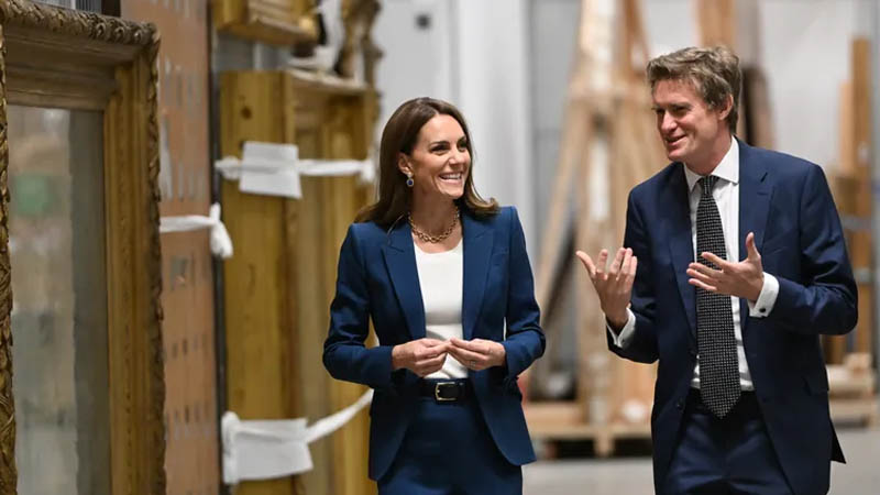 For the occasion, Kate stuck to a trusted fashion formula, donning a sleek ensemble from one of her long-time favourites, Alexander McQueen. She wore an eye-catching electric blue crepe jacket paired with matching cigarette wool trousers — a modern, polished choice that stood out without screaming for attention. As always, she made the look her own with a crisp, white, puff-sleeve cotton-blend top from American designer Ralph Lauren, adding a subtle contrast to the vivid color of the suit.