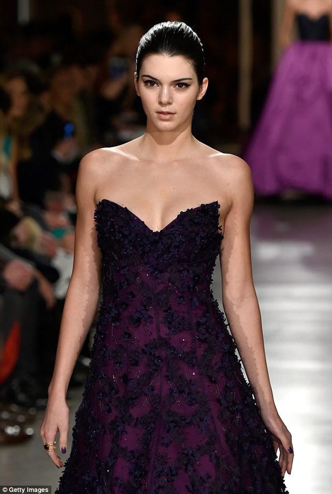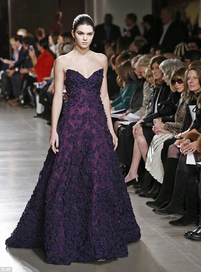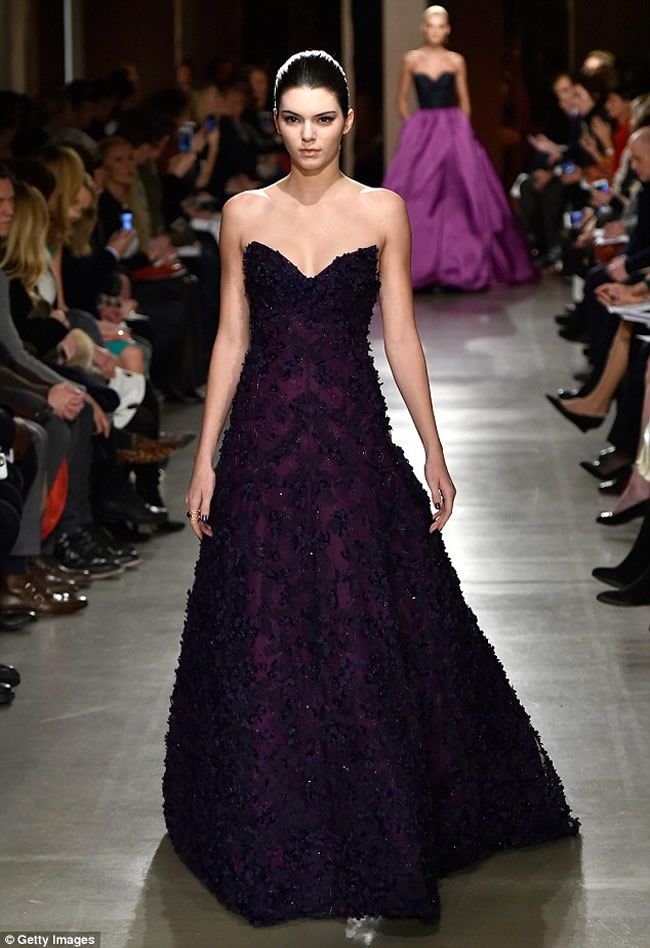 Earlier in the day, she rocked the catwalk in a military-chic ensemble for Marc Jacobs during New York Fashion Week. And Kendall Jenner showed off her versatile runway style as she went from edgy to elegant in a deep purple ball gown for the Oscar de la Renta fall 2015 presentation later on Tuesday.