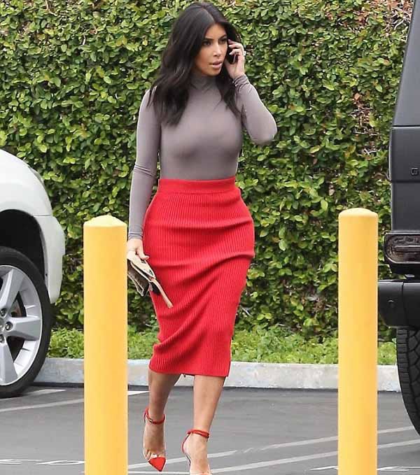 Kim Kardashian defies soaring temperatures as she steps out in a high-waisted woolen rouge skirt. It seems Kim Kardashian West is unafraid of trying out any designer creation, whatever the weather.