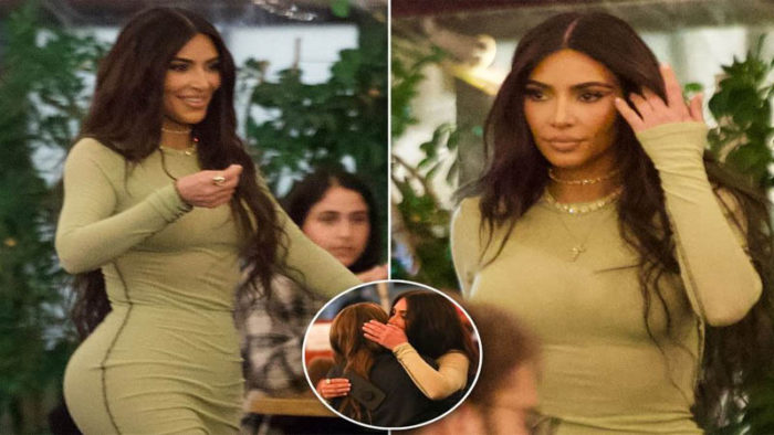 A smiling, animated Kim made it clear she was not mourning the huge changes to her personal life as she laughed with her gang and pouted for smiling selfies during the friendly celebratory-style dinner.