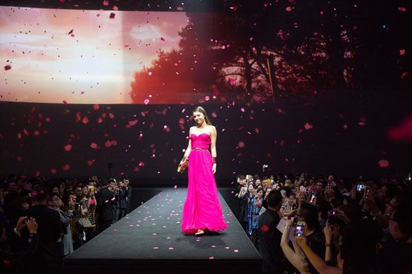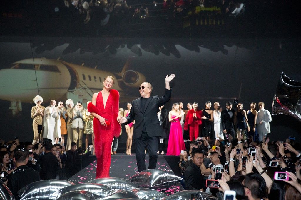 “That’s my plane,” beamed a proud John D. Idol, chairman and chief executive officer of Michael Kors Holdings Ltd., as he glanced over at the private jet he loaned to his company for its “Jet Set Experience” event set at Hongqiao International Airport. The parked jet was the first thing attendees saw when they entered the venue, a private hangar at the airport. Guests who included Hilary Swank, Freida Pinto, Camilla Belle, Silas Chou, Ming Xi, Hu Bing, Gao Yuanyuan and fashion designer Uma Wang proceeded to take in a runway show of one-off pieces Kors created for the occasion to illustrate the jet-set lifestyle. The collection covered everything from sleek evening dresses to swimwear and fur-trimmed mountain resortwear. Along the way, large-scale video projections set the scene for each locale and provided an aerial view of each model’s walk down the runway.