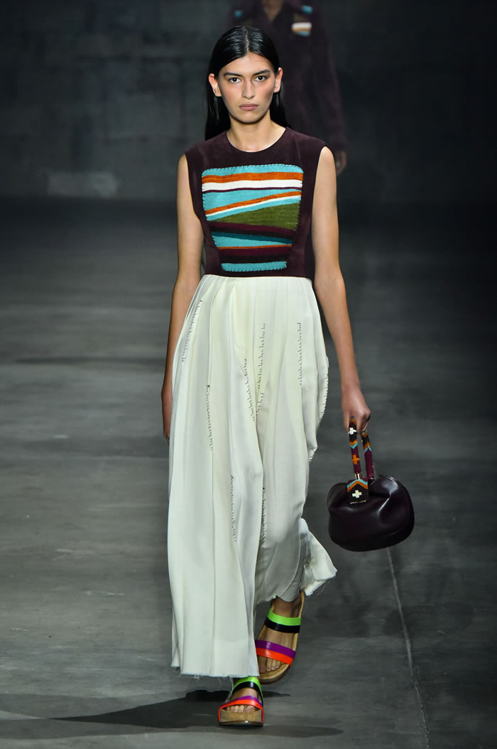 Crochet continues to dominate the runways, as well as artisanal details and traces of craftsmanship (as seen at Altuzarra and Ulla Johnson), bold primaries and rainbow palettes, couture-like caped silhouettes (at Gabriela Hearst, Oscar de la Renta, Carolina Herrera and Rodarte), side cutouts or “chic obliques” (at LaQuan Smith and Rodarte), and psychedelic motifs (at Brandon Maxwell and Rodarte).