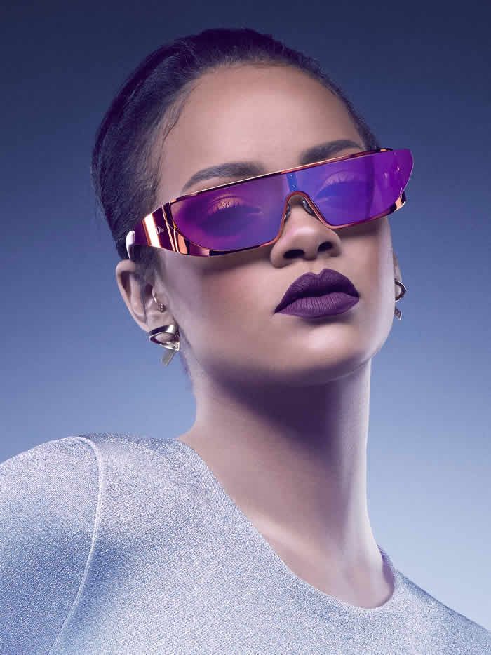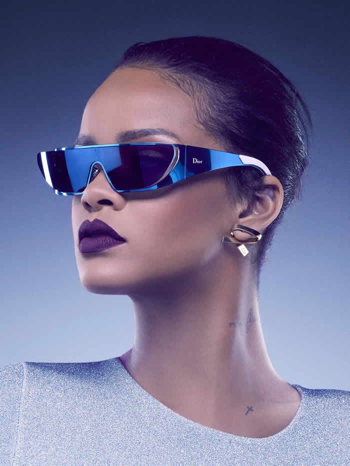 You can tell when Rihanna‘s responsible for designing an item for a brand. Her edgy and boundary-pushing style has led her to not only create a signature collection for Puma but also now a selection of sunglasses for Christian Dior. The metalized shades are designed with clean lines and reflective lenses and come in colors from neon green to rose gold. Simply named "Rihanna," the futuristic-looking sunnies are exactly what one would expect from the singer. Rihanna appears to be as obsessed with them as we already are and has been sporting them with any outfit. The singer paired the frames with a simple triangle bikini and was later seen wearing a different-colored shade with a sporty black vest, proving these shades make a versatile statement. Read ahead for a glimpse of all the sunglasses, and then shop your favorite pairs from the collection.