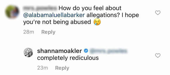 Later, gossip account @unconfirmedreport wrote about Alabama’s response via their Instagram and highlighted Shanna’s previous claim that Travis controls the teen’s Instagram — which prompted her to comment on the post. “That was completely me,” Alabama replied. “She lied. I control my Instagram. I’m of age.”