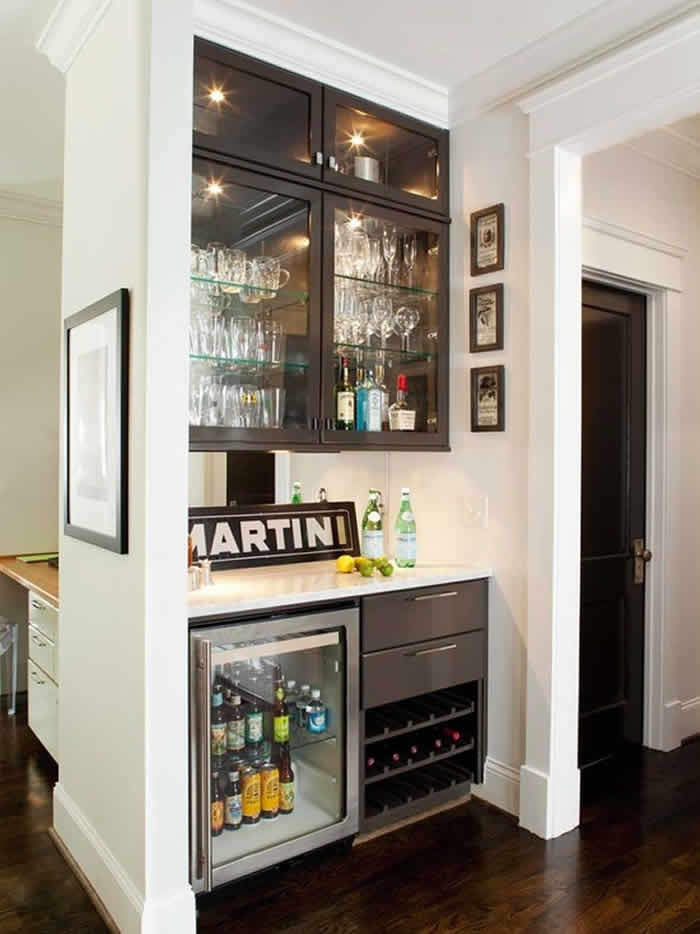 A home bar adds life to any party or family gathering but not all of us have enough space for a large and beautiful mixing station. A small bar probably an only option for many of us. It usually occupies only one sideboard, a bar cart or a tray so you can find a place for it in any home. A bar is a must for every party, and just to have a glass of wine in the evening, too. If your home isn’t big and you can’t accommodate a normal bar or cellar, a mini bar option is for you!