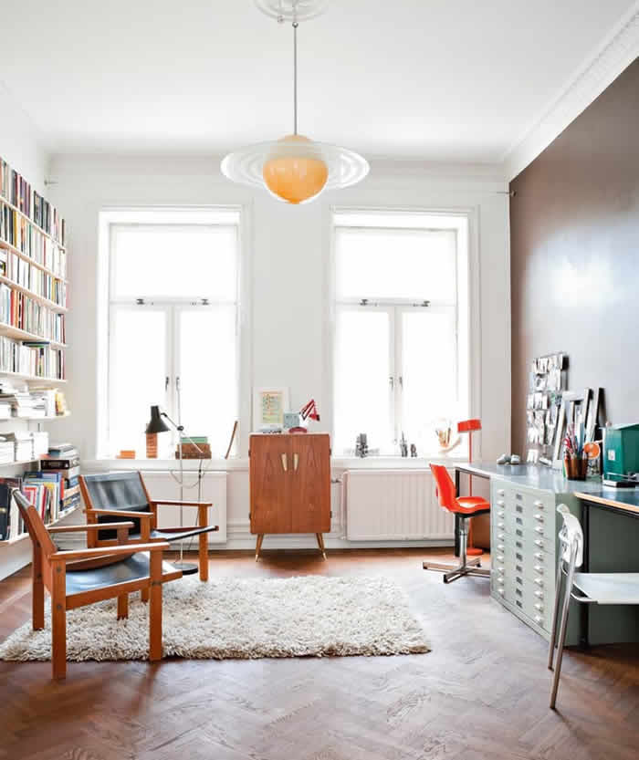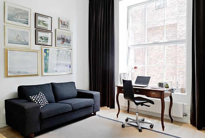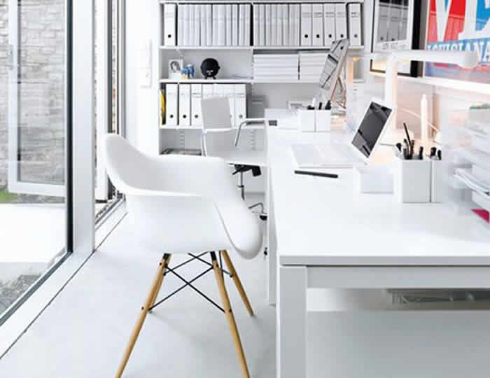 The shadows and atmosphere cast by dull and gloomy rooms doesn’t just impact your mood, but actually makes a home office appear smaller. Decorating in neutral colours is one of the best ways to open up a smaller space by reflecting natural light and making it appear brighter. This doesn’t mean you have to stick to white paint though – robin’s egg blue, light grey, beige, cream, pastel green and off-white all look great and are a subtle way to include more adventurous colours.