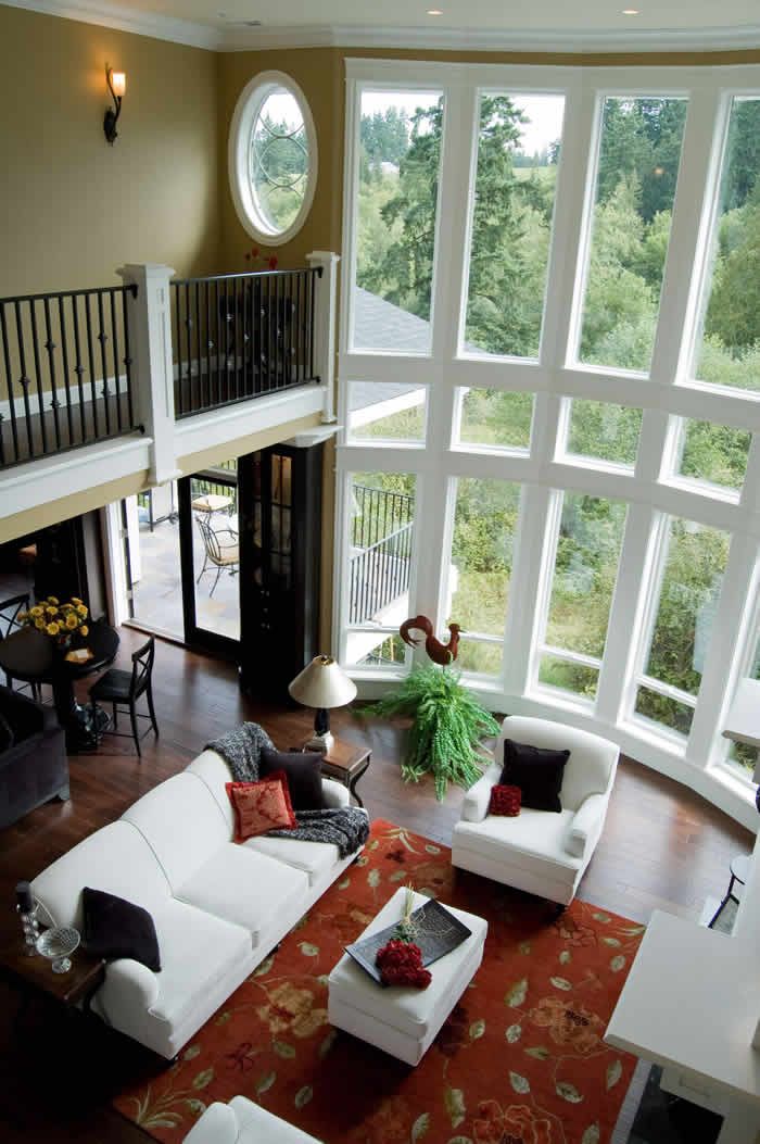 To make a small living room appear more spacious, add floor-to-ceiling window treatments. This eclectic living room features extra-high ceilings, despite its small floor plan. This simple addition will automatically draw eyes up the wall for a much larger feel. Design by Lori Dennis.