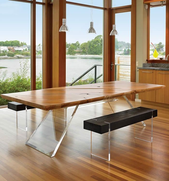 CB1 table in western maple with acrylic base by Autonomous Furniture Collective.