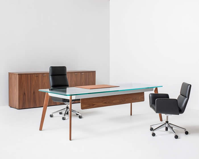 Centro office collection in white-painted oak and micro-etched glass by BDI.
