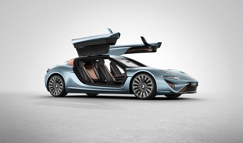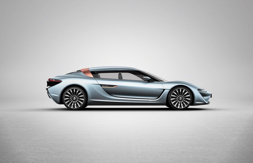 Built around a monocoque composed of carbon-fibre structures, the intelligent four seater electric sportscar boasts gull-wing doors and features an innovative drive-train concept with four electric motors (one per wheel).