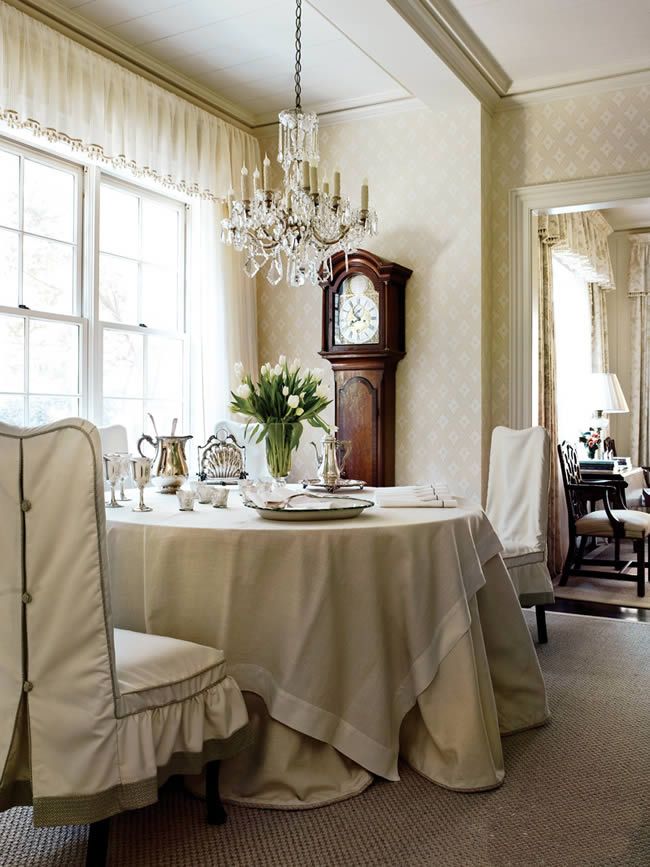 Adding a skirt to any table, whether a desk, center table, console, or nightstand instantly increases the hidden storage in your home while simultaneously adding a chic, tailored element to your décor.