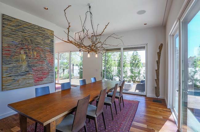 The concept seems easy enough to pull off and of course you can use various variations of it like a branch suspended from ceiling that acts as a supporting rod or even maybe go the way of bamboo since they are both strong and flexible. Do chose the right pendant lamps to go along though and ensure that they too sport a tinge of green for the best possible result.