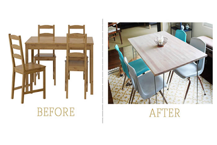 If you’ve ever looked at your dining room table and thought, “I am so tired of this table, but I can’t get replace it because it’s in perfectly good shape,” this hack is for you. One do-it-yourselfer, Gina, who runs the Acute Designs blog, turned a traditional looking table into a contemporary design in just a few steps. She removed the legs, trimmed the wood around the top, and replaced the wooden legs with metal hairpin legs. She then sanded and stained the tabletop. But beware: you will probably want to replace the chairs, because the old ones won’t go with your sleek “new” table.