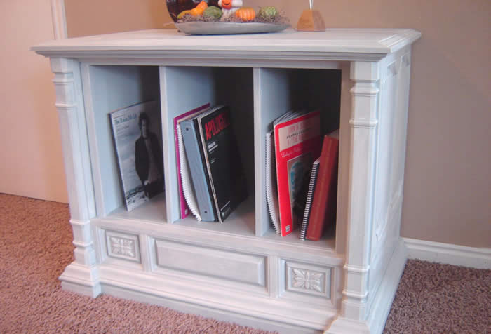 Early television sets were more than screens; they were important pieces of furniture, the focal point of the living room. You can still find an occasional wooden television console in second-hand stores—or better yet discarded on the street. The television won’t do you much good, but that solid console—with its fine decorative touches—just screams for a hack. All you need to do is remove the television (with its huge tube), add a couple of vertical dividers or horizontal shelves, and give it a good paint job. Now you have a terrific hutch for your living room—unique, repurposed, and beautiful just like the one we saw on Home Hinges.