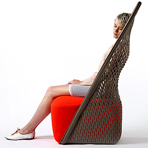 Breaking traditional rules of seating typology and styling Cradle utilises a custom-made cut pattern that allows a non-elastic textile to perform in a three dimensional way. This allows for the correct tension to comfortably support the body and both visually and physically reduces the product’s weight and cost.