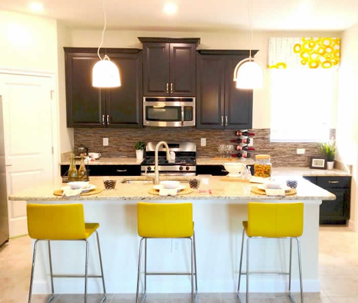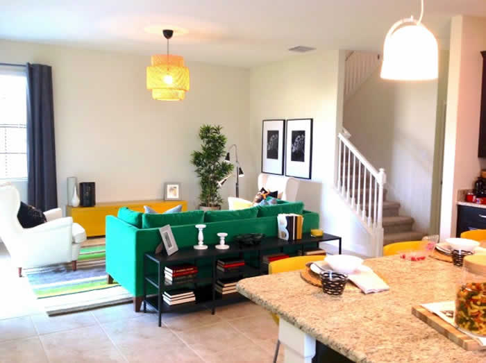 “In the Rio I took a more sleek and contemporary approach infused with natural greens and yellows for a touch of Zen. In this home I geared the downstairs area for the adults in the family and made sure the kids had a great room to relax and play in.”