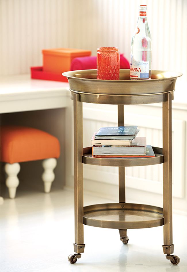 Make entertaining at home a breeze with side tables that can handle serving duties, too. Place a bar cart alongside a chair or sofa – the top can keep frequently used items within reach, while the bottom will chicly house bottles, glasses and barware. Look for one on casters, so you can easily move it around during a party, then right back into place again. Or choose a table with a lift-off tray top – perfect for passing around hors d’oeuvres and other tasty treats when company drops by.