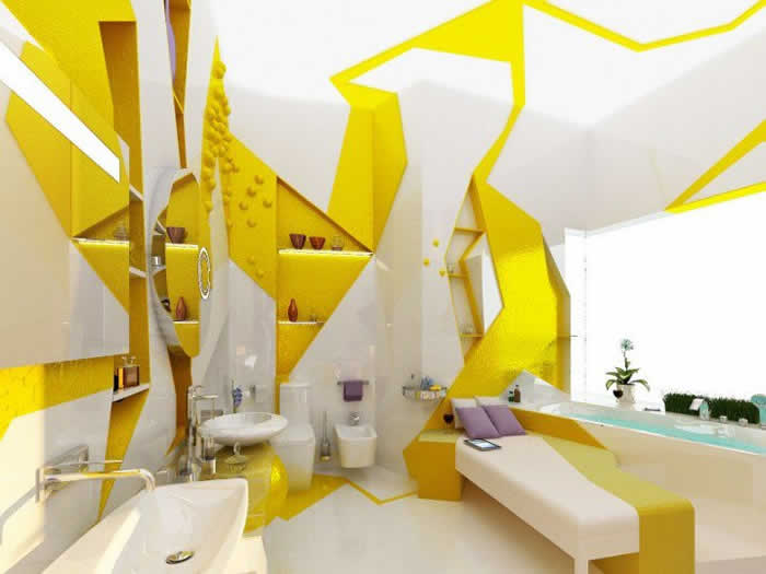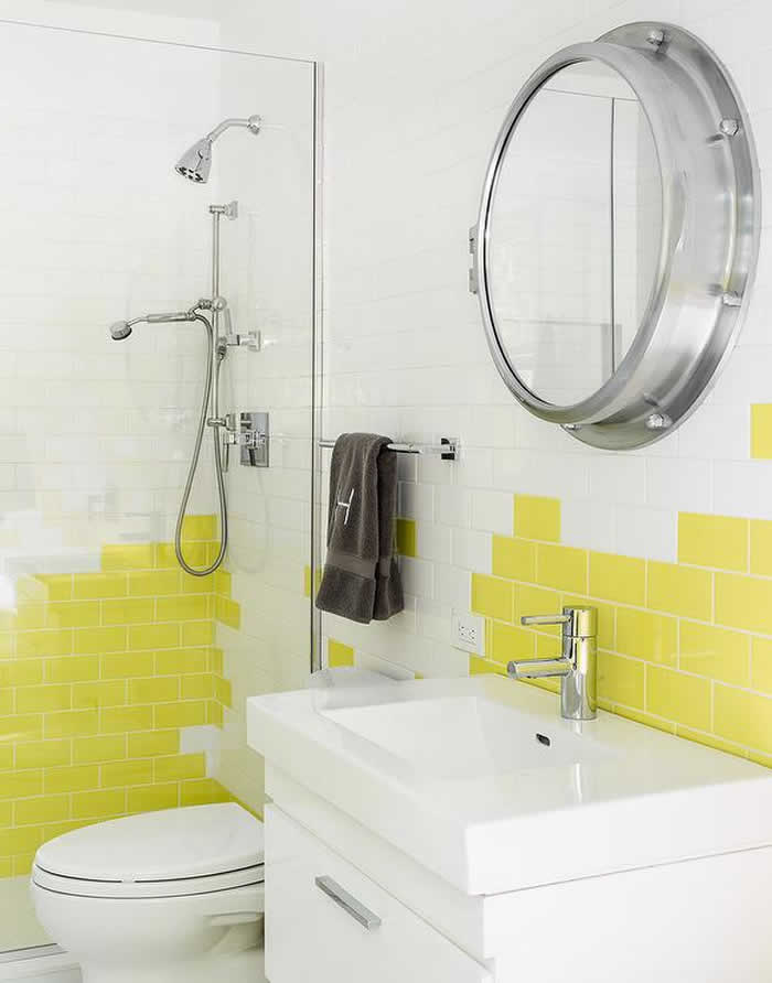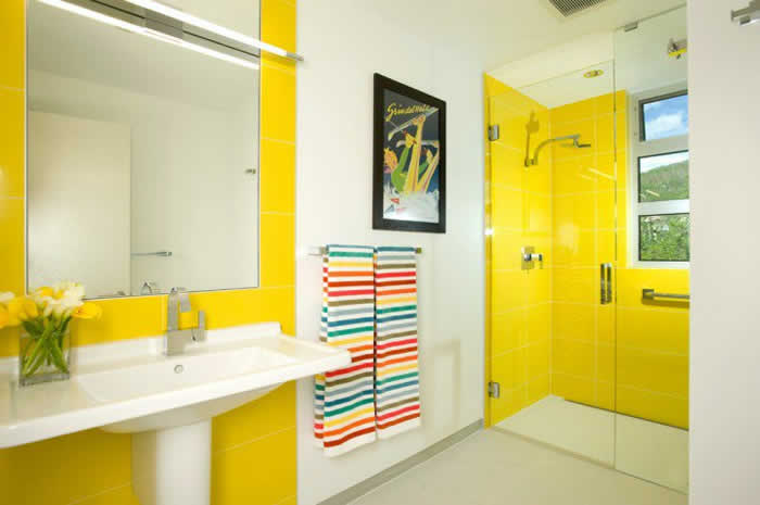 How do you like the idea? If you decorate your bathrooms in yellow, you will be able to enjoy this sunny color during the gloomy autumn and winter too.