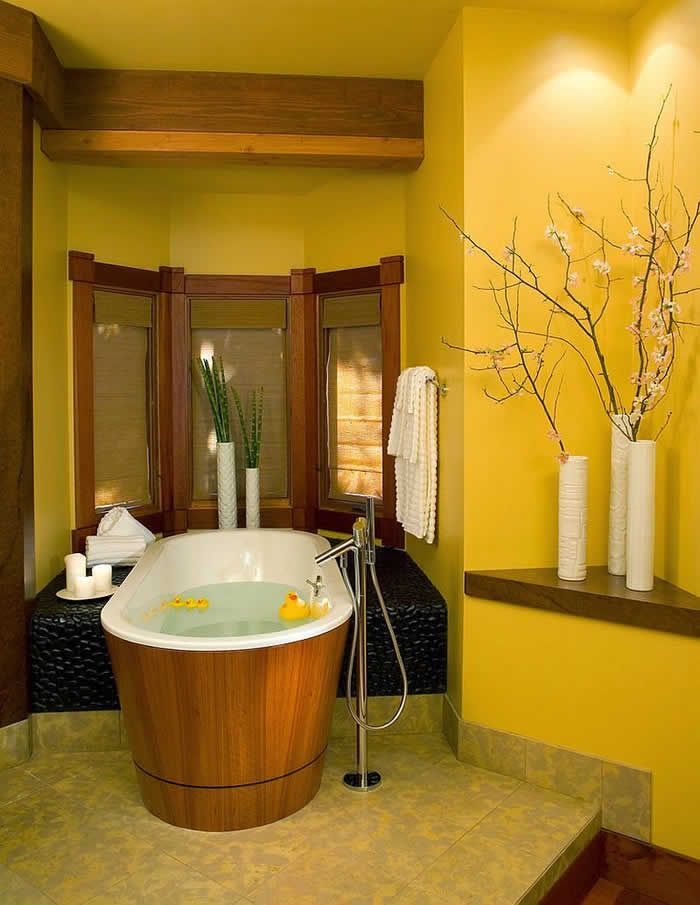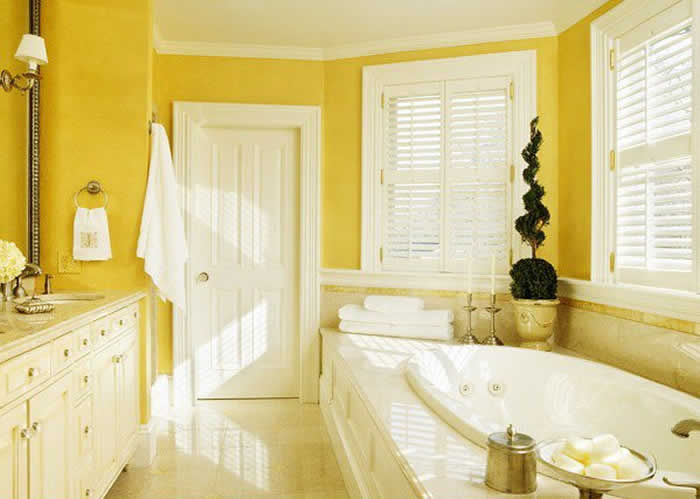The bathroom that is decorated with thew warm yellow hues should be decorated with plants as well, so go ahead and add some in this room too! The yellow color is a pleasing color and you can work with it in combination with other colors as well.