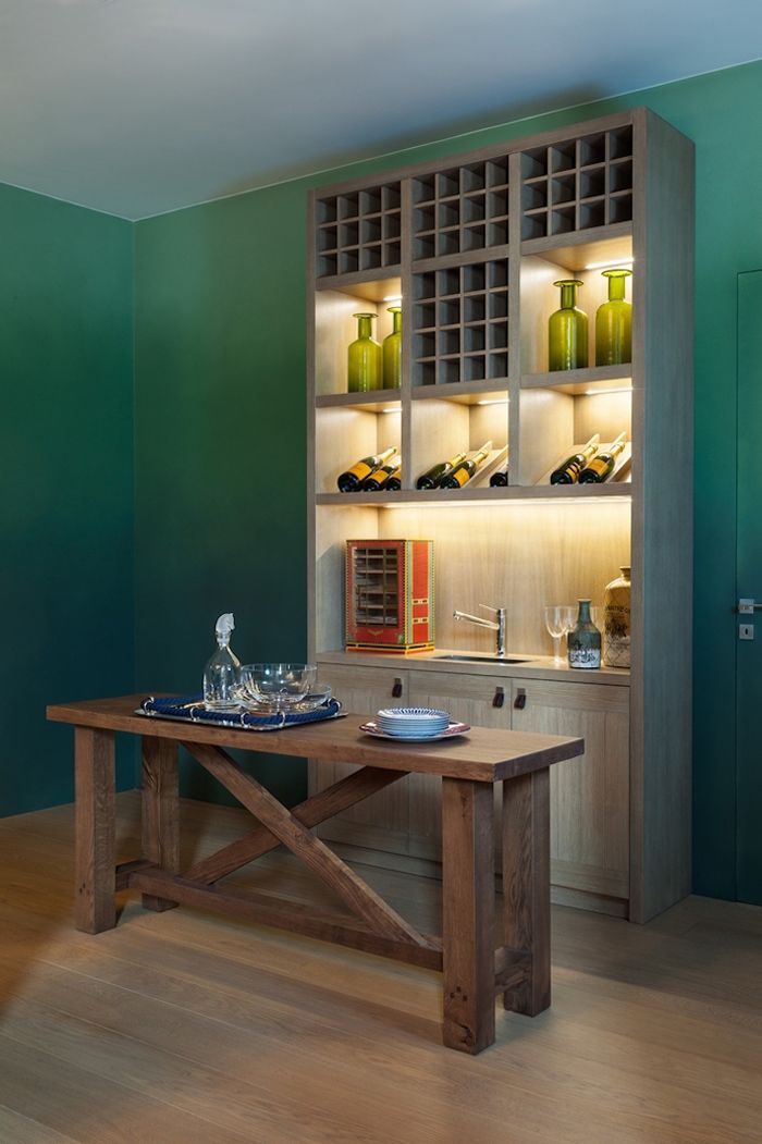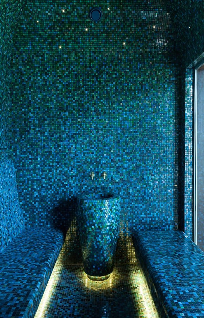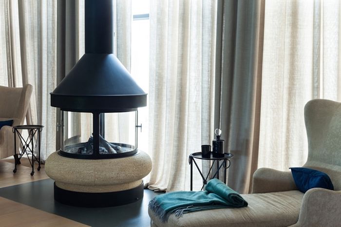 The ground floor of the mansion is open to the house guests: here are located the reception room, dining room, two guest rooms, a cinema, sports hall and spa. Two formerly small and dark rooms have been restructured to accommodate a sauna and Turkish bath. Panoramic glazing throws open the surrounding landscape at a glance, and the spa, finished in cumaru wood, enjoys direct access to the terrace. All of BRABBU’s pieces were included in this floor.