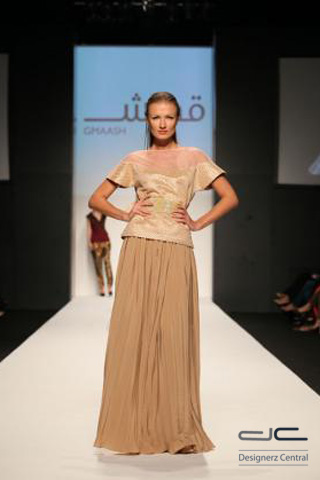 Exclusive Gmaash dresses by Moza Al Maro as shown at Dubai Fashion Week.