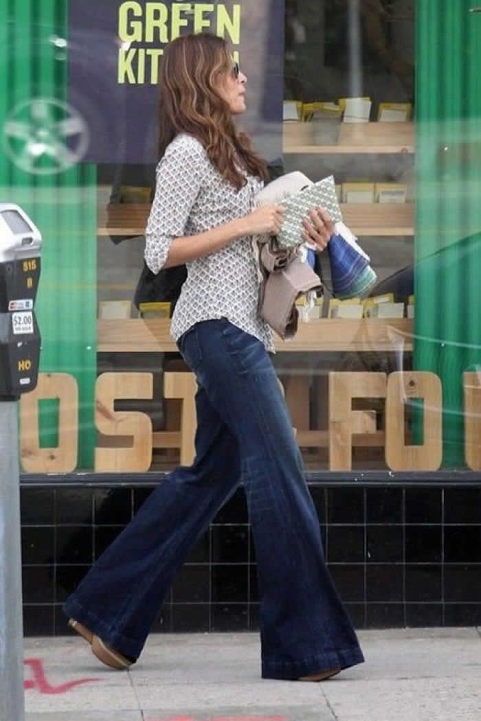 #8- Stunning dark blue flares matched perfectly with wedges. Nicely fitted top and matching clutch bag finish this look beautifully.Arabs women who are quite into Muslim women Fashion can also wear this pant provided wear a hijab with it .There are quite in these days for hijab fashion and there are many hijab styles that can be matched for street styles.
