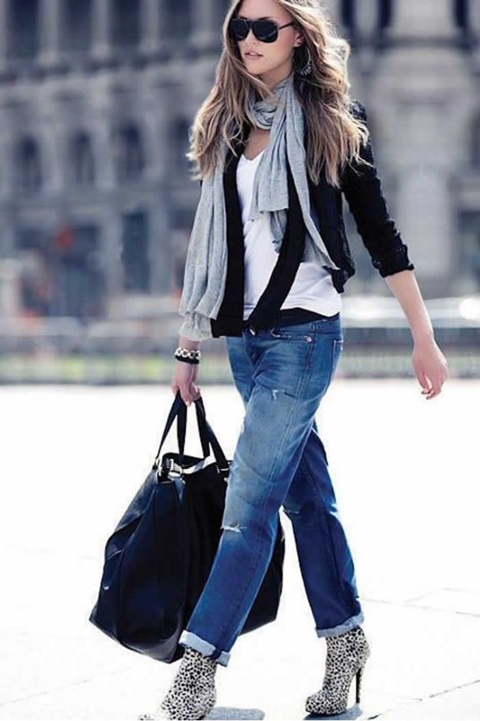 #1- Eye catching dalmation print platform stiletto boots matched with baggy, distressed jeans make for a superbly stunning city look. Add a long scarf for colour and depth.