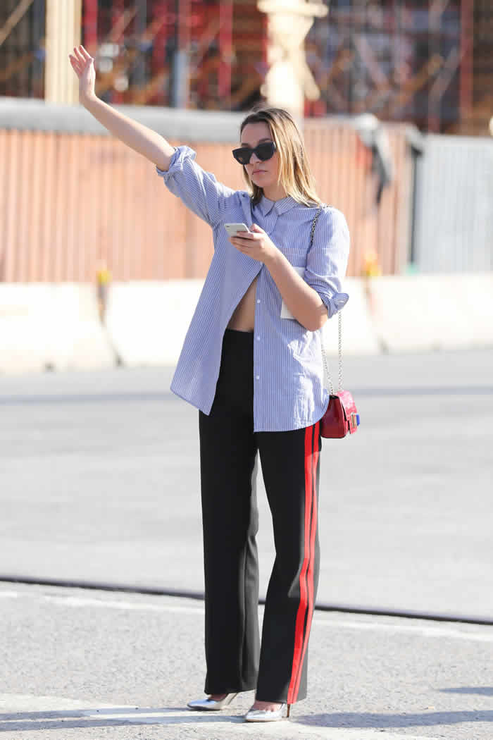 Paired With a Button-Down That’s Open Like a Belly Shirt, and Metallic Heels