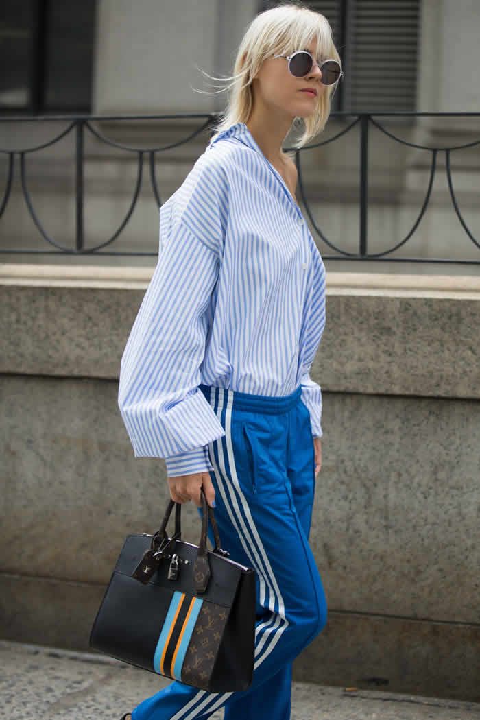 The last time we wore Adidas track pants we were throwing them over gym shorts and pairing them with cleats for soccer practice. That was long before the athleisure trend came back in a big way last year. And while we’ve graduated from leggings and Yeezy trainers to roomy trousers, there are still so many fresh combinations to try.