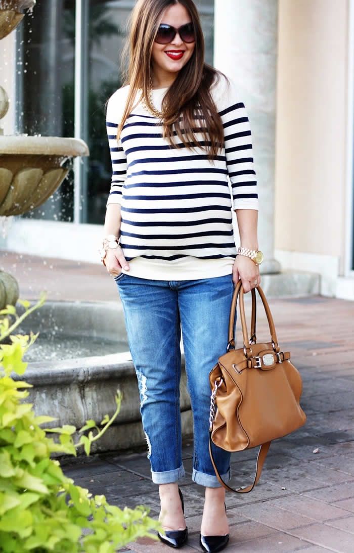 3. CROPPED DENIM AND STRIPED TEE