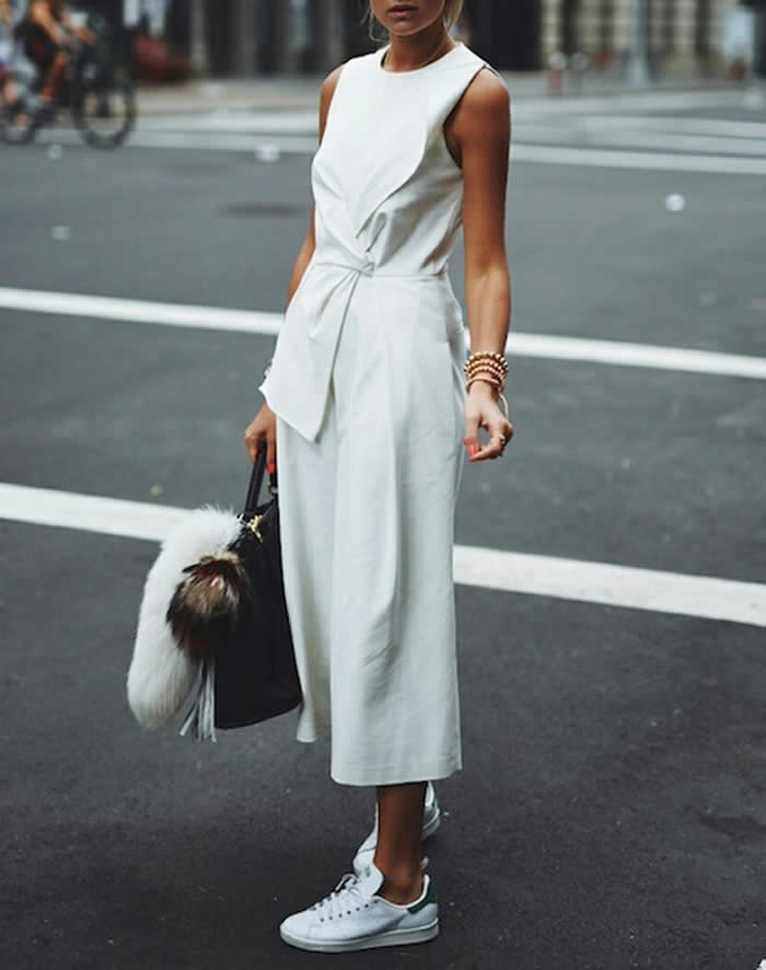 You’re pretty proud of your outfit game (as are we). You’ve forsaken the overly trendy and the uncomfortable for classic, laidback and timeless pieces. Those way-too-narrow flats, though? They’re cramping your style…and your toes. That’s why 2016 is all about the white sneaker. Here, 15 chic ways to wear your clean kicks with just about everything in your closet.