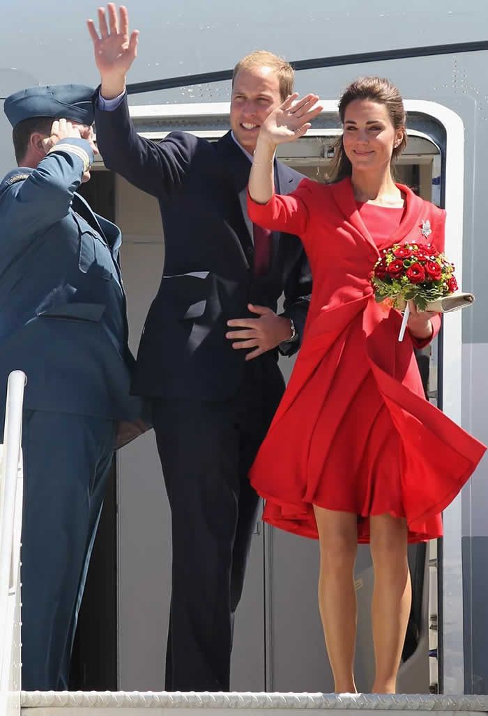 Kate Middleton wearing Catherine Walker at Calgary Airport.