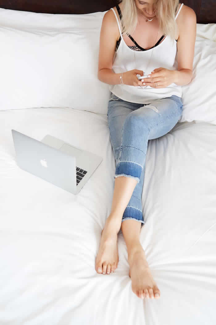 Sexy, strappy bras are on the rise. In fact, we’ve got a bit of our wardrobe sectioned off for them. But revealing the eye-catching details can be tricky. You want to show off your lingerie with sophistication and class. So, if you’re managing this with a white top, make sure it’s opaque and not too loose. Finish your outfit with stylish separates, like frayed denim, that scream, "I’m here to make a statement." And most importantly, work your look with confidence.