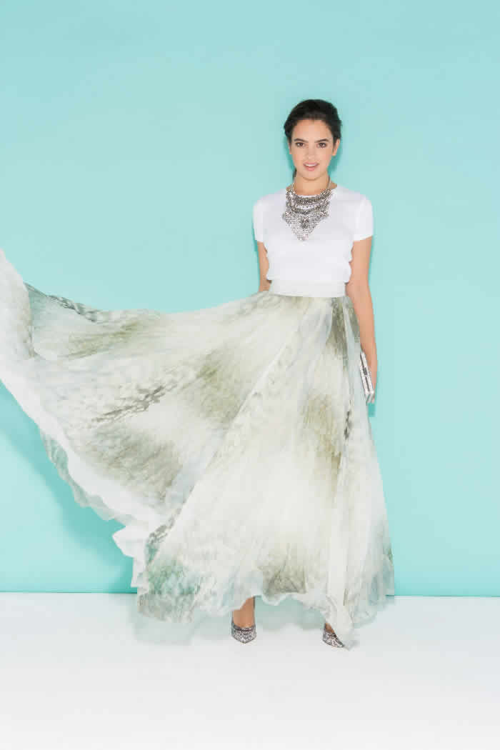 Got a maxi that’s just too long or too big? Add a tight white tee to break it up and give off the illusion of a skirt. And don’t let it take over! Playful pumps that accent a statement necklace work to round out your outfit and create balance.
