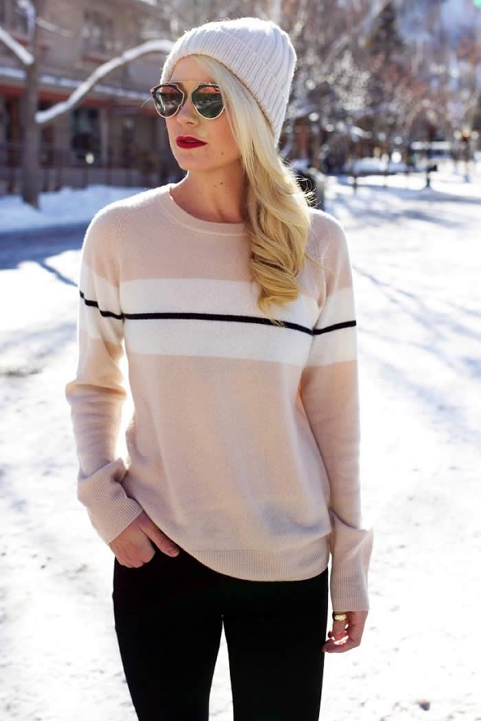 When it comes to accessorizing in the winter, choose pieces that have fashion as well as function. Like fashion blogger Blair Eadie, think of color blocked scarves are toasty without being bulky. You may even loop it around your neck for a pop of color to your outfit, or style it like a shawl with a dress. Adding a hat when it’s cold can really do much for increasing comfort, and a cashmere beanie is in style right now so, find a color that appeals to you. Gloves are a must-have whether it’s a pair of leather gloves or cashmere ones that can be warm and wind repellent.