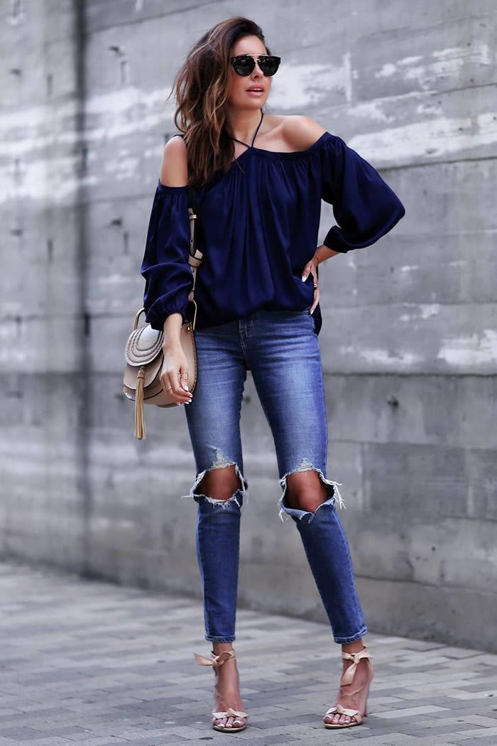 Showing actual skin is way sexier and more comfortable than strapping yourself into something body-con. Think of wearing open tops like cold-shoulder, off-shoulder, backless and halter tops in free-flowing silhouette to keep you comfortable and cool, but balance them with chic bottoms. If you have a billowy top, wear something short on the bottom. And if you’re wearing something loose on the bottom, pair it with something that shows off your arms, chest, shoulders, or back.