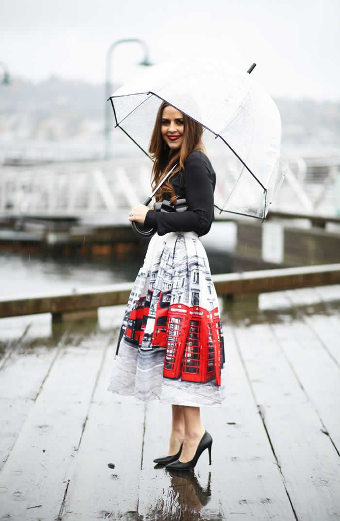 Unless it’s summer, go for transparent umbrellas that will add some playful vibe to your style. Since they’re colorless, they’re best to carry with your statement outfits full of colors as well as graphic print outfits that will look bold and cohesive with your cute accessory.
