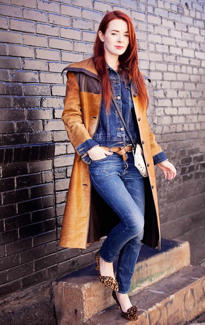 Also known as a Canadian tuxedo, the easiest trick to rocking double denim without looking like you got lost on the way is to pair pieces of varying washes together, such as a light denim shirt with dark denim jeans, or a denim top with different fabric trims with denim jeans like fashion blogger Zanita Whittington did.