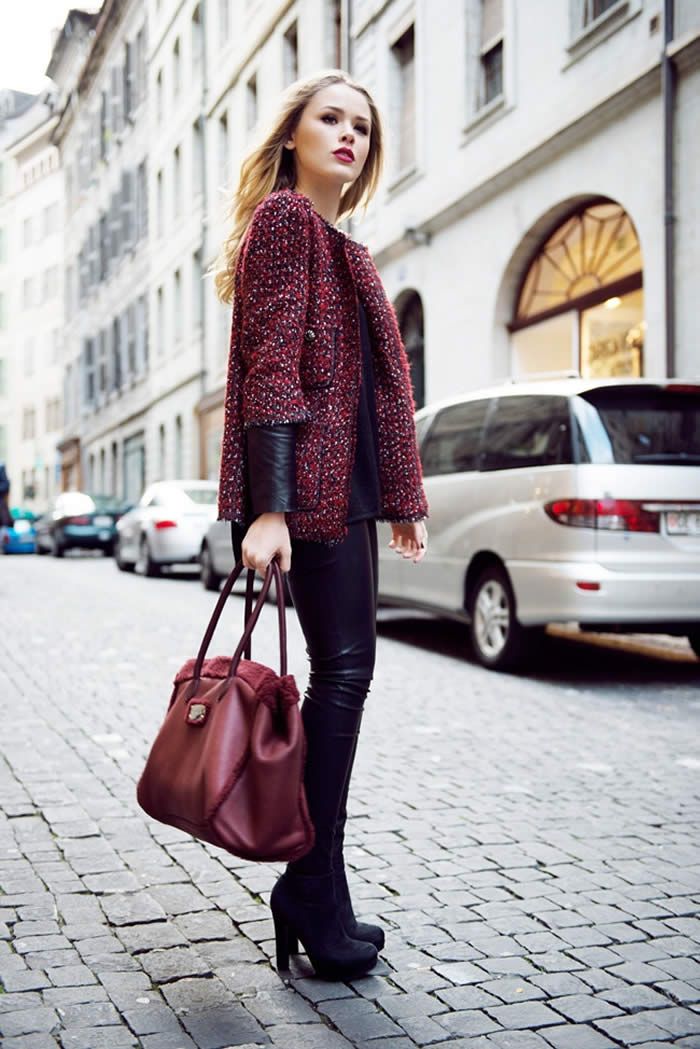 You may think of mixing your burgundy pieces with luxe fabrics like brocades, silk, velvet, and lace for a regal look. Wearing the shade head-to-toe doesn’t look intimidating compared to red.