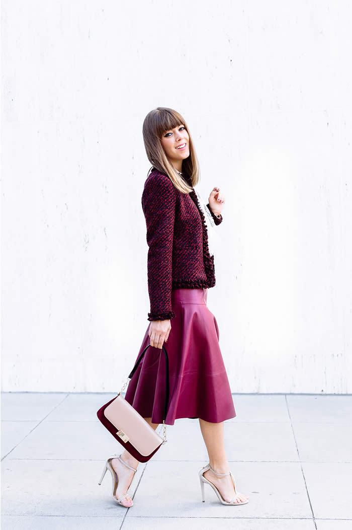 Like Kristina Bazan you may pair the elegant shade with black shoes or simply keep it dominant by pairing it with nude pumps.