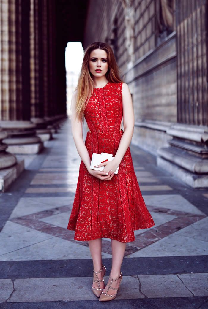 Going for a midi dress with moderate sleeves also looks feminine but in a demure and classic way. However, skip this color if you’re going in the conservative setting like weddings and business meetings to avoid giving a wrong impression on the bold and daring shade you’re wearing.