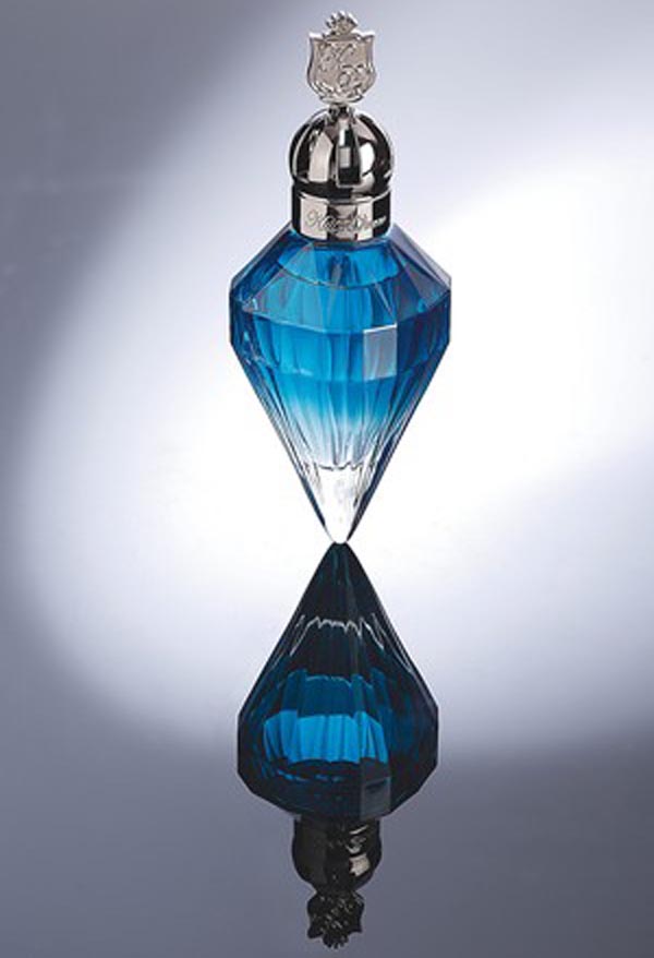 The Royal Revolution flacon is fashioned in the same jewel-shaped design as Killer Queen, which launched last year, but this time it’s been done in a graduated shade of teal blue, with a gunmetal colored cap that’s topped with the crest Coty has created for Perry. The outer packaging consists of a teal blue box with a silver filigree design, inspired by the engravings on regal swords.